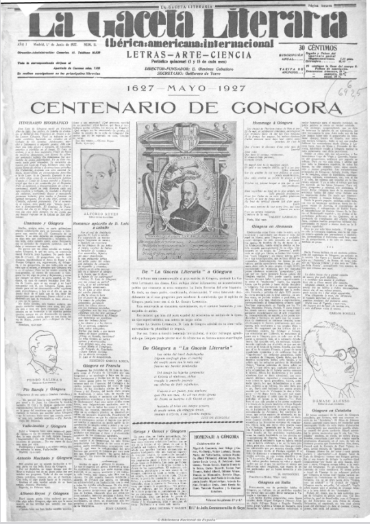 Primero, Lorca, con un poema que elogia a Luis de Góngora justo en 1927, en una revista literaria que celebra el centenario.