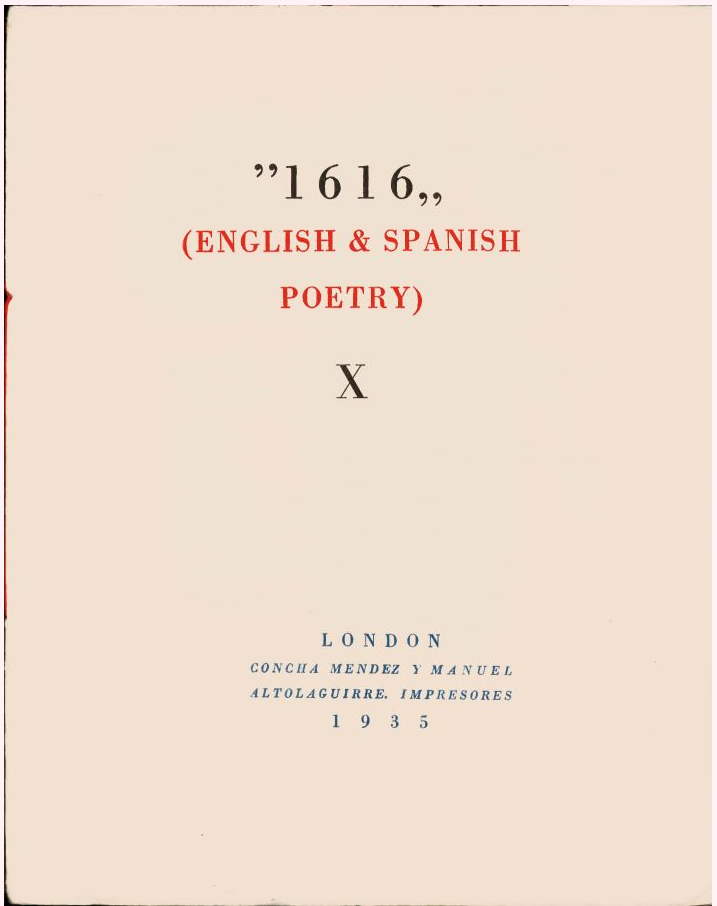 Tercero. Esta poeta o poetisa, como se decía entonces, Concha Méndez, era también impresora y editora, tanto de Héroe como de esta 1616, que celebra el aniversario de Cervantes y también de Shakesperare. La autora había perdido su primer hijo y escribió este poema…