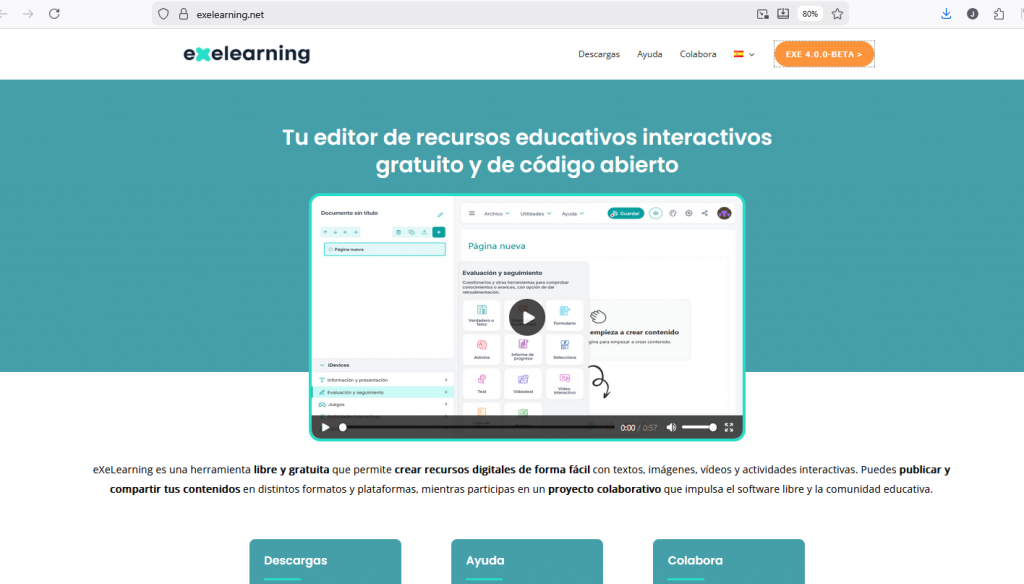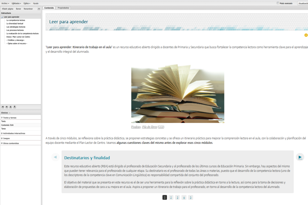 Vamos a iniciar el proceso de creación de nuestro recurso educativo abierto en los formatos del programa eXelearning, una herramienta libre y gratuita avalada por el Ministerio de Educación que permite crear recursos digitales con textos, imágenes, vídeos y actividades interactivas.