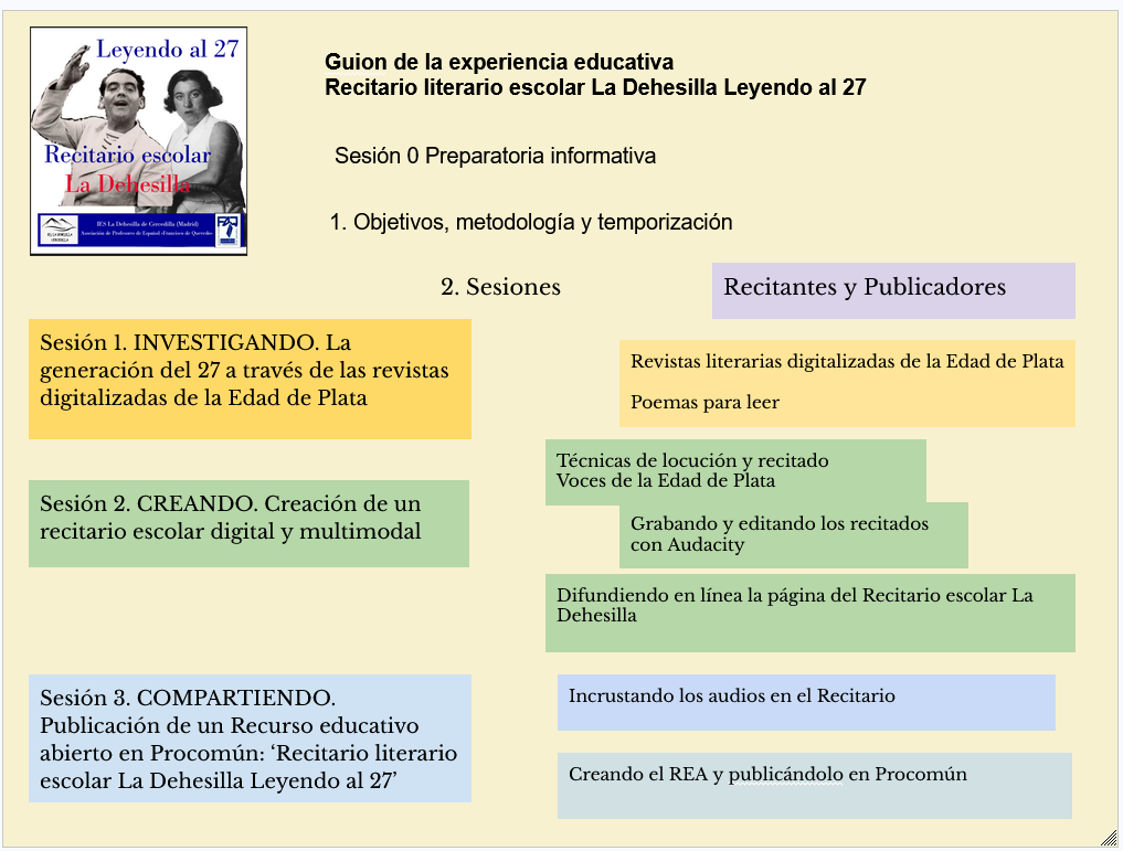 | Sesión 3. COMPARTIENDO. Publicación de un Recurso educativo abierto en Procomún: ‘Recitario literario escolar La Dehesilla Leyendo al 27’ | |